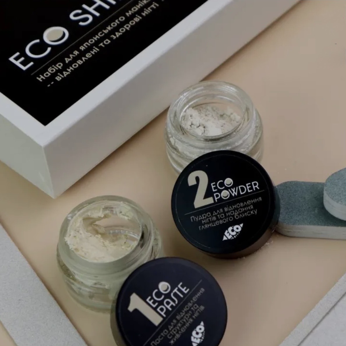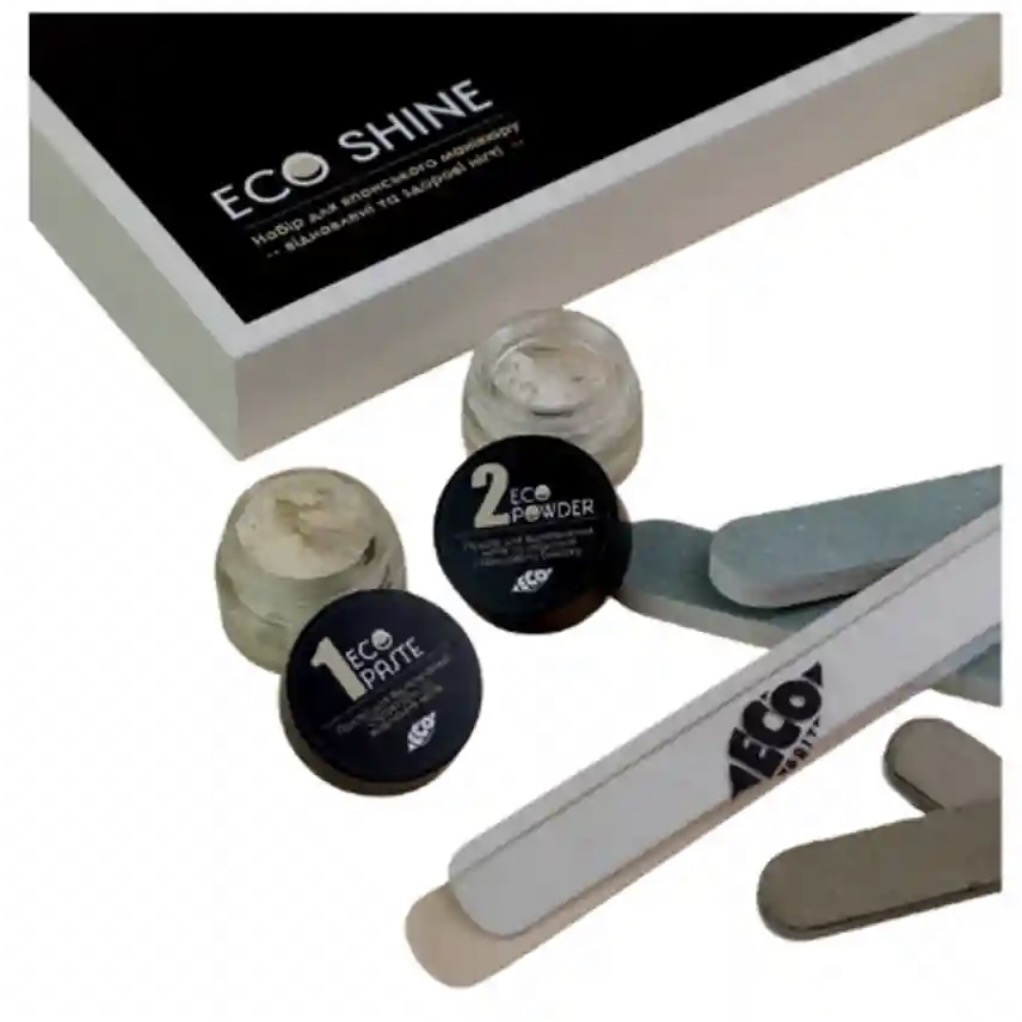 Этот набор — идеальный выбор для тех, кто ценит натуральность, здоровье и эстетику ногтей. Eco Shine обеспечивает эффект ухоженных, блестящих ногтей уже после первой процедуры.