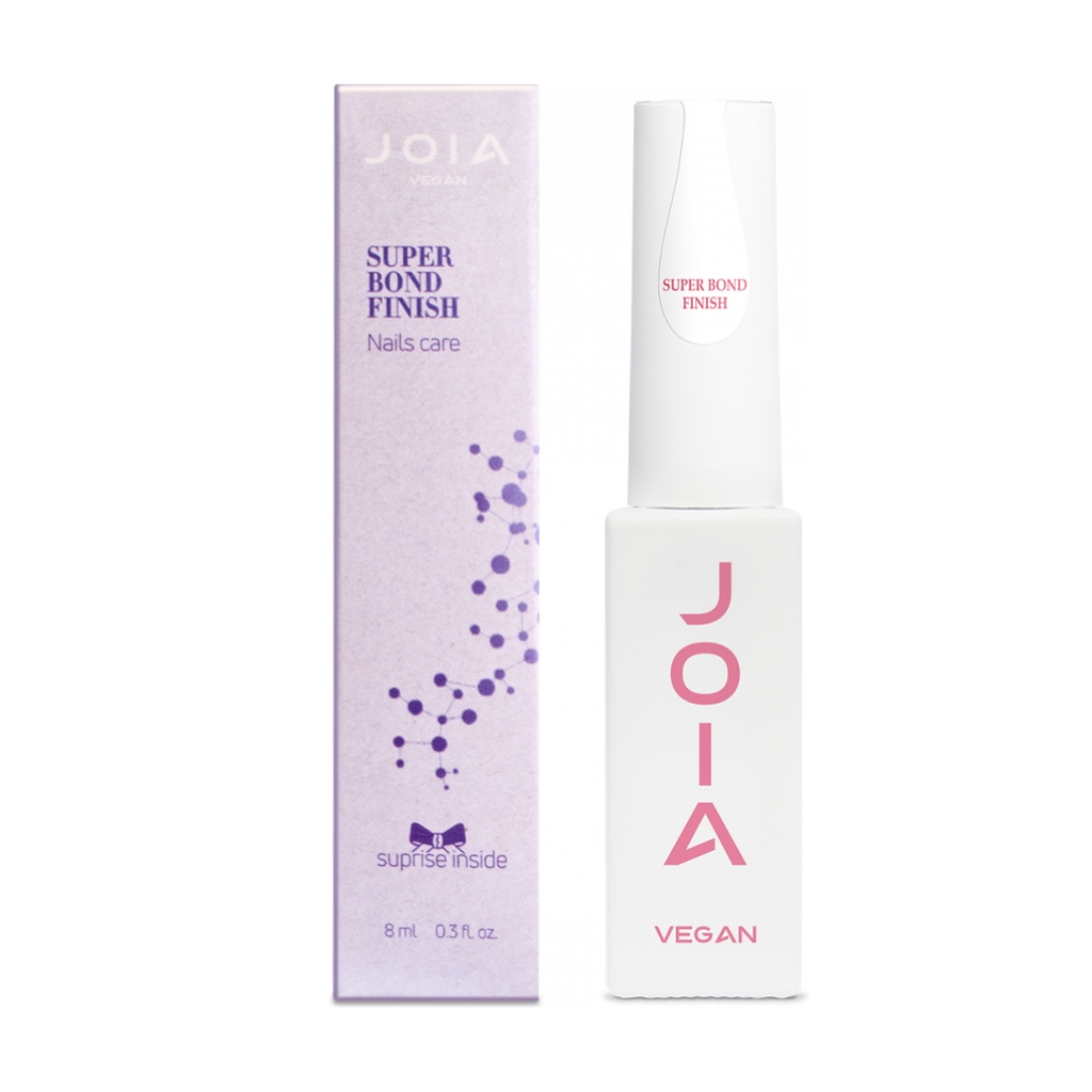 Super Bond Finish JOIA vegan — профессиональное гибридное гипоаллергенное финишное покрытие для ногтей, которое обеспечивает семидневную стойкость. Профессиональный финиш имеет дышащую формулу с уникальным ухаживающим комплексом из кератина, масла жожоба и витамина Е для эффективного ухода за ногтями.